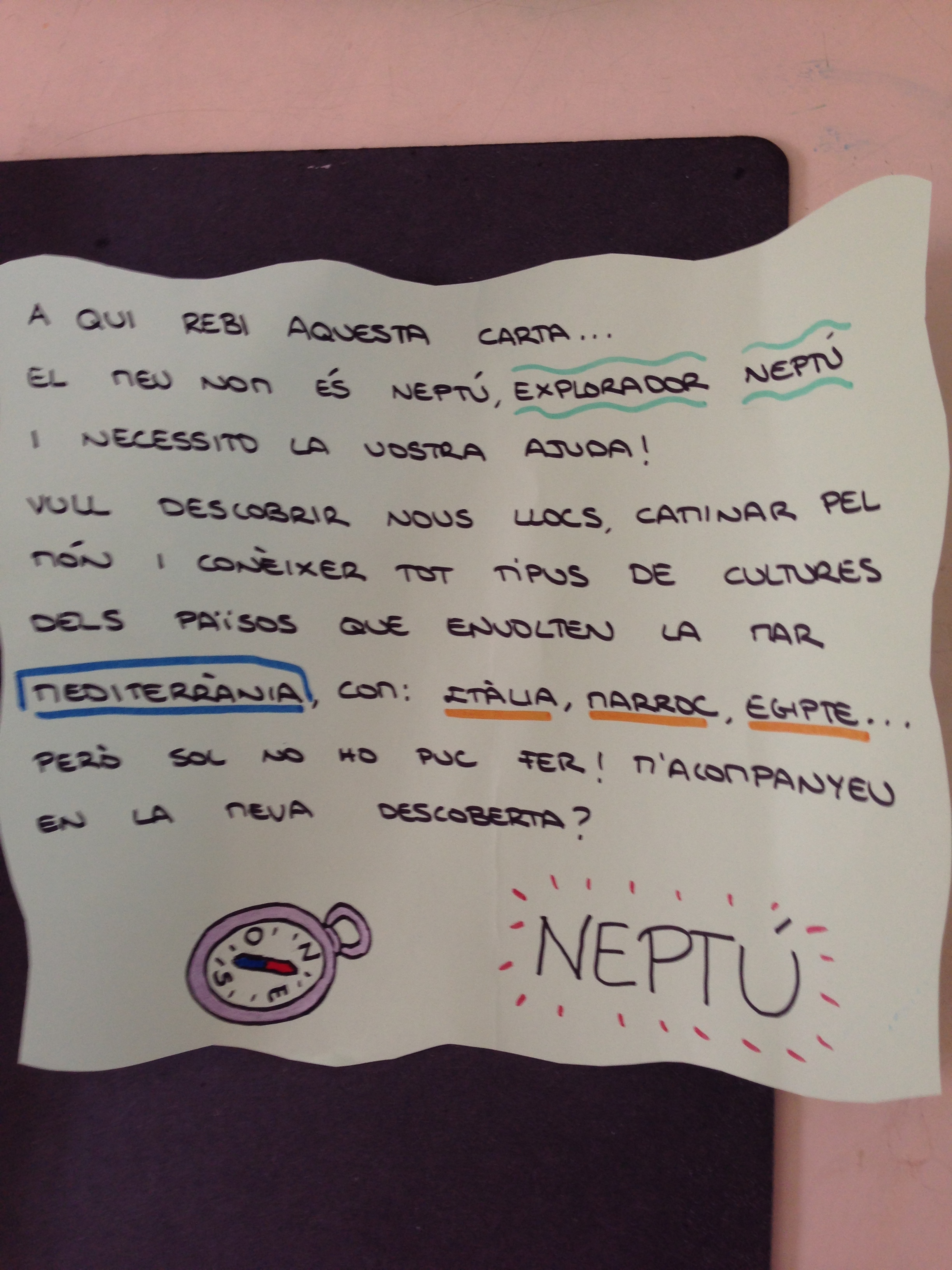 Neptú és un intrèpid explorador! Aquest estiu vol emprendre un viatge per la costa del Mediterrani. Però necessita ajuda en aquesta experiència… vol que el grup de les meduses, els més grans, li acompanyem en aquesta aventura. Estem disposats a passar-ho genial i descobrir nous indrets, costums, monuments…!!