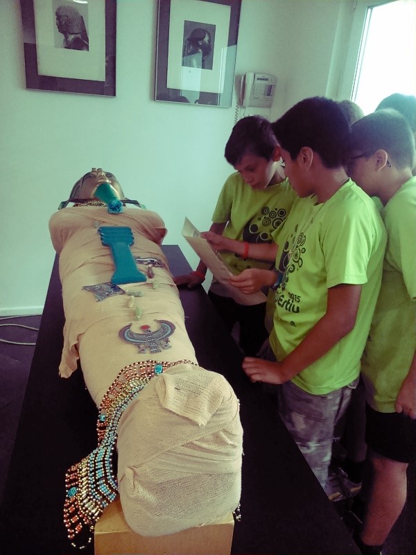La setmana passada el grup de grans vam viatjar al passat per conèixer civilitzacions antigues com la grega o l’egípcia. Amb elles vam descobrir, per exemple, altres maneres d’entendre la mort, gràcies a les restes que vam veure al Museu Egipci i la història que ens van explicar sobre la mort d’Osiris. Al museu vam aprendre com pensàven els egipcis i també com escrivien, ens van ensenyar a momificar i a escriure els nostre noms amb l’alfabet antic egipci!