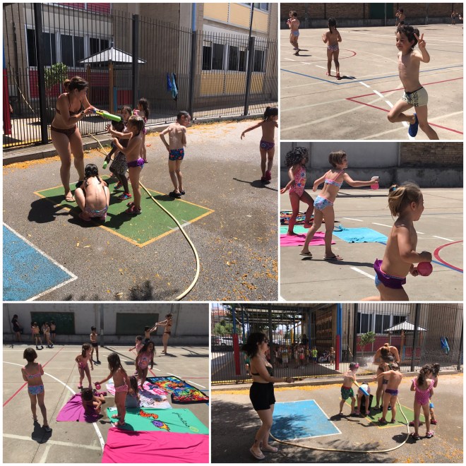 El primer dia vam fer jocs de coneixença com el pistoler, per poder conèixer a tots i totes les companyes i a les monitores del casal. Hem jugat també a la bomba i al futbol xinès. Com feia tanta calor, després del pati hem fet jocs d’aigua i mànega, ens encanta fer la remullada tots plegats!