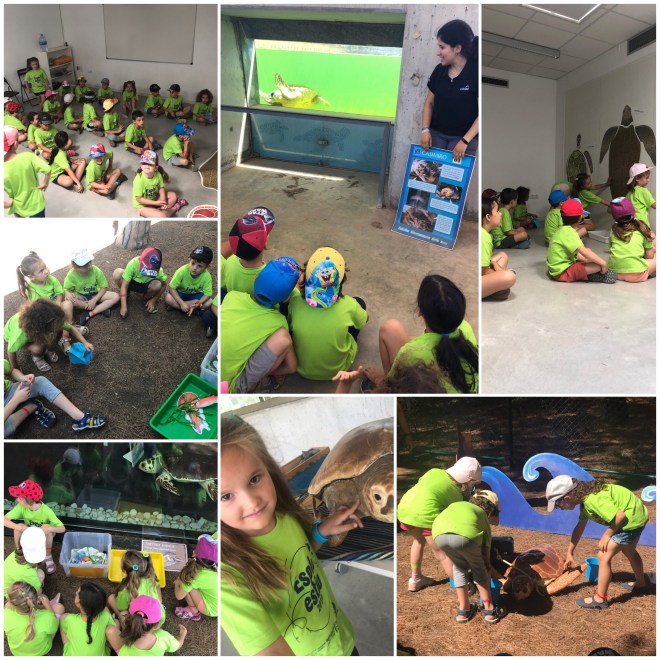 I últim dia de la setmana… Marxem d’excursió al CRAM (Fundació per a la conservació i recuperació d’animals marins). A l’autocar ens ho hem passat d’allò més bé, a tots els túnels cridàvem i parlàvem amb els nostres companys. Quan hem arribat, hem esmorzat a l’ombra, s’estava super bé perquè corria molt aire. Després ha vingut l’Alba, una monitora d’allà i hem anat a jugar. Havíem d’aconseguir 4 peces d’un mapa per poder anar a veure a les tortugues fent diverses activitats. La 1a d’elles havíem de col·locar amb imant a la paret les parts de la tortuga d’un en un i ho hem aconseguit. En 2 lloc, havíem de recordar que menjaven els 3 tipus de tortuga i en petits grups classificar-ho, també aconseguit. La 3a activitat consistia a poder ajudar a una tortuga que trobem a la platja i que té una ampolla de gasoil amb una corda al cos i plàstic a la boca, hem fet de veterinaris i hem salvat a la tortuga. Per últim havíem de classificar en gran grup les normes per anar a veure les tortugues…i, ja TENIM EL MAPA! En silenci i a poc a poc hem anat on estaven les tortugues recuperant-se i quina sorpresa quan en Casimiro (tortuga) ha vingut al vidre a veure’ns, que gran i bonic que és!