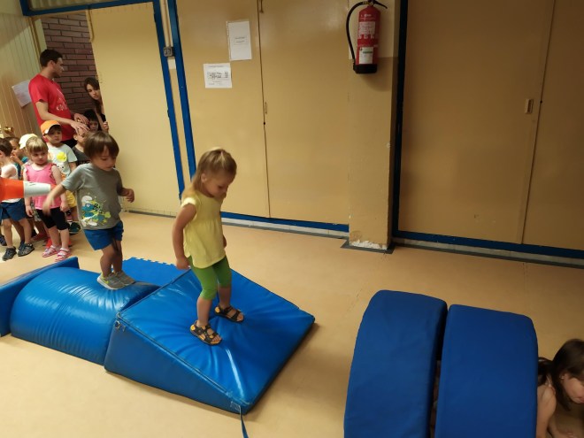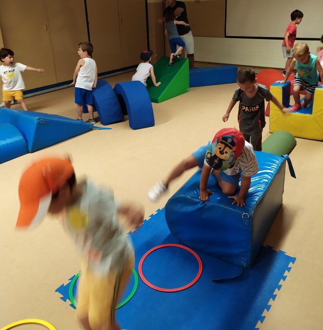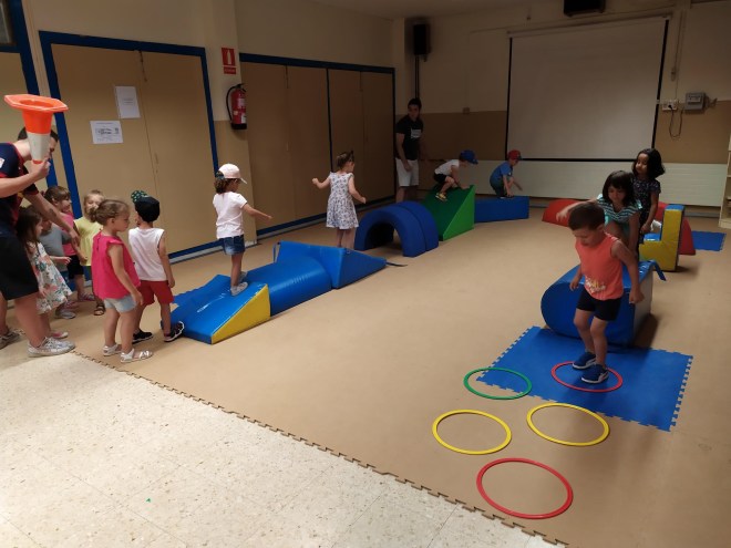 El dijous van començar a fer una mica d’exercicis movent el nostre cos, fent psicomotricitat. I després han fet una gimkana d’esports, perquè a América juguen a una amplia varietat de diferents esports.