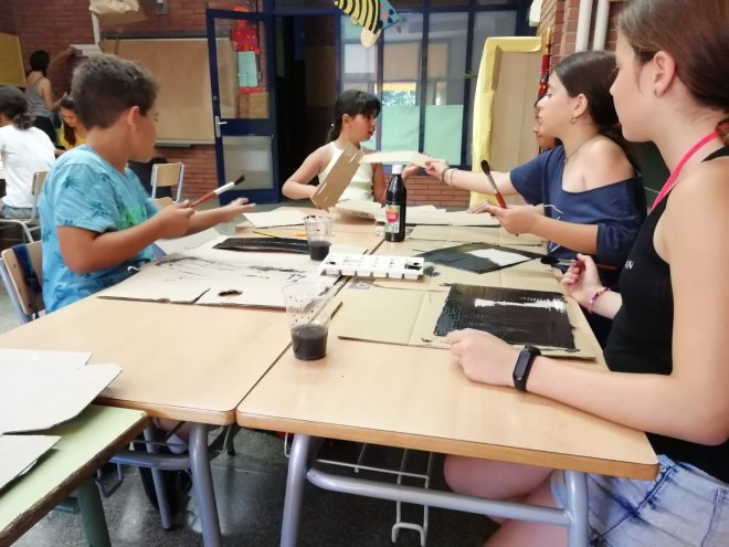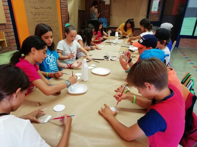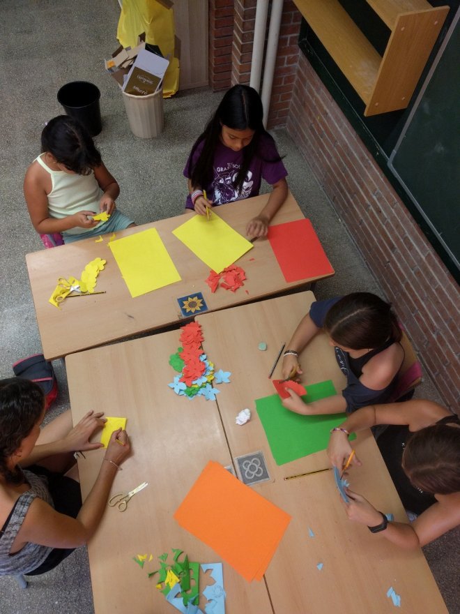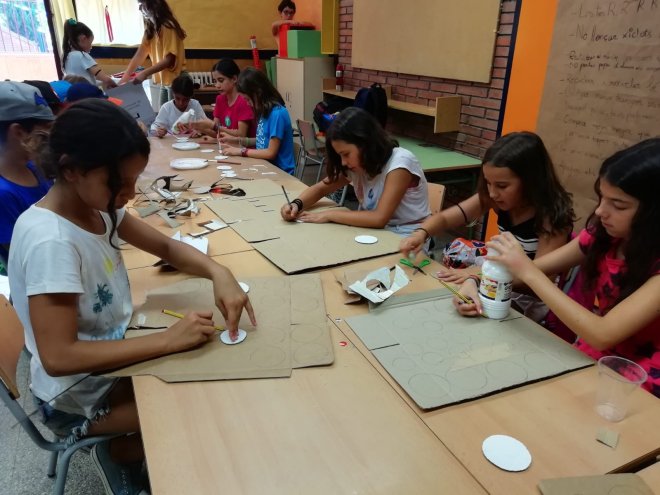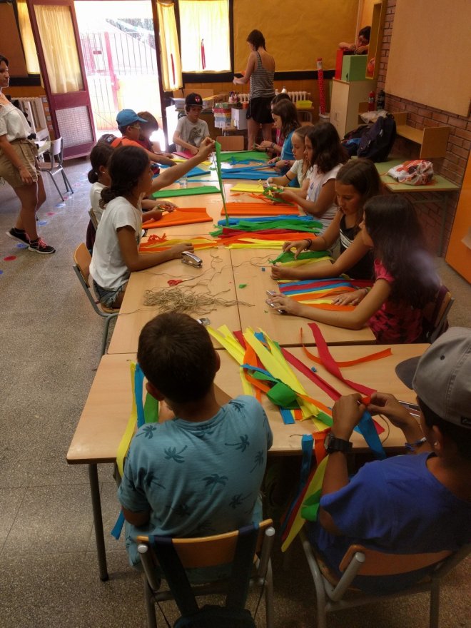 Dilluns vam començar a crear unes càmeres de vídeo com les que fan servir a Hollywood. Dimarts, les vam acabar i a més, vam fer unes claquetes. També vam confeccionar uns collarets i unes faldilles hawaianes. Tot això fent un treball en cadena d’allò més organitzat!