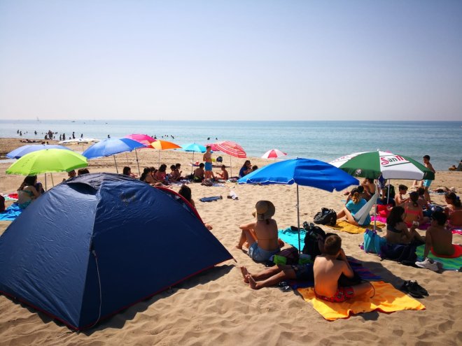 Per acabar la setmana ben animats i remullats, divendres vam anar a la platja de Castelldefels. Anàvem súper preparats amb para-sols, jocs de cartes, cometes, pales, pilotes… i ens ho hem passat d’allò més bé! Alguns i algunes han acabat tan cansats que fins i tot van prendre una petita migdiada al tren.