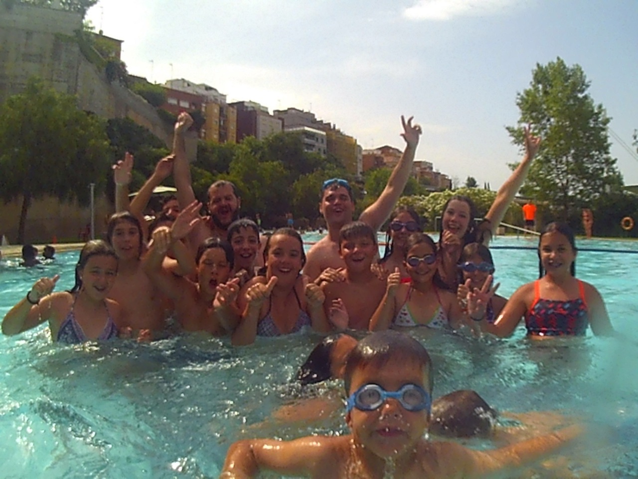 Era Dijous El Primer dia de piscina: sol, aigua, crema i amb tot fotos el grup !!