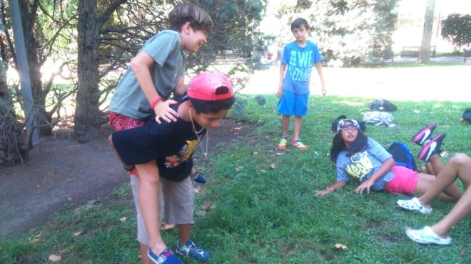 Durant la setmana també vam realitzar una gimcana enfocada en el centre d’interès i per tant en la literatura i en la tribu dels llibres. El resultat d’aquesta va ser realment gratificant, ja que els infants del grup MITJANS i GRANS van poder compartir experiències i jugar conjuntament. Les proves permetien que els nens i nenes treballessin en grup i a la vegada també esdevinguessin d’allò més autònoms. En aquest cas, els monitors ens trobàvem en un segon pla i únicament ajudàvem quan els infants ho demanaven.